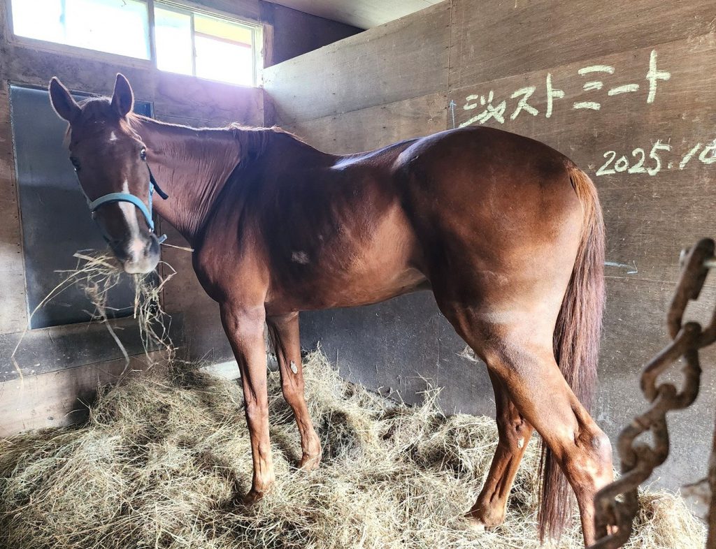 2025年10月9日、神奈川県の乗馬クラブ<横浜市馬術協会>から引退乗用馬ジャストミートが標茶町に来ました。